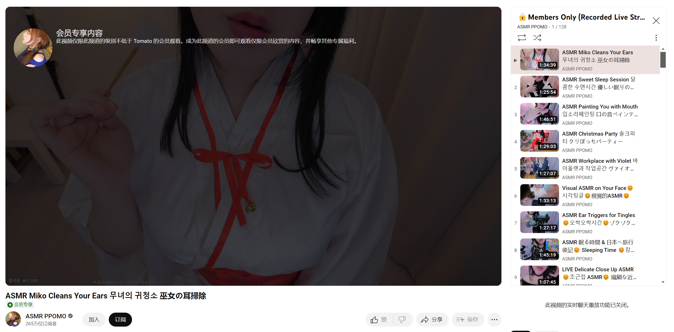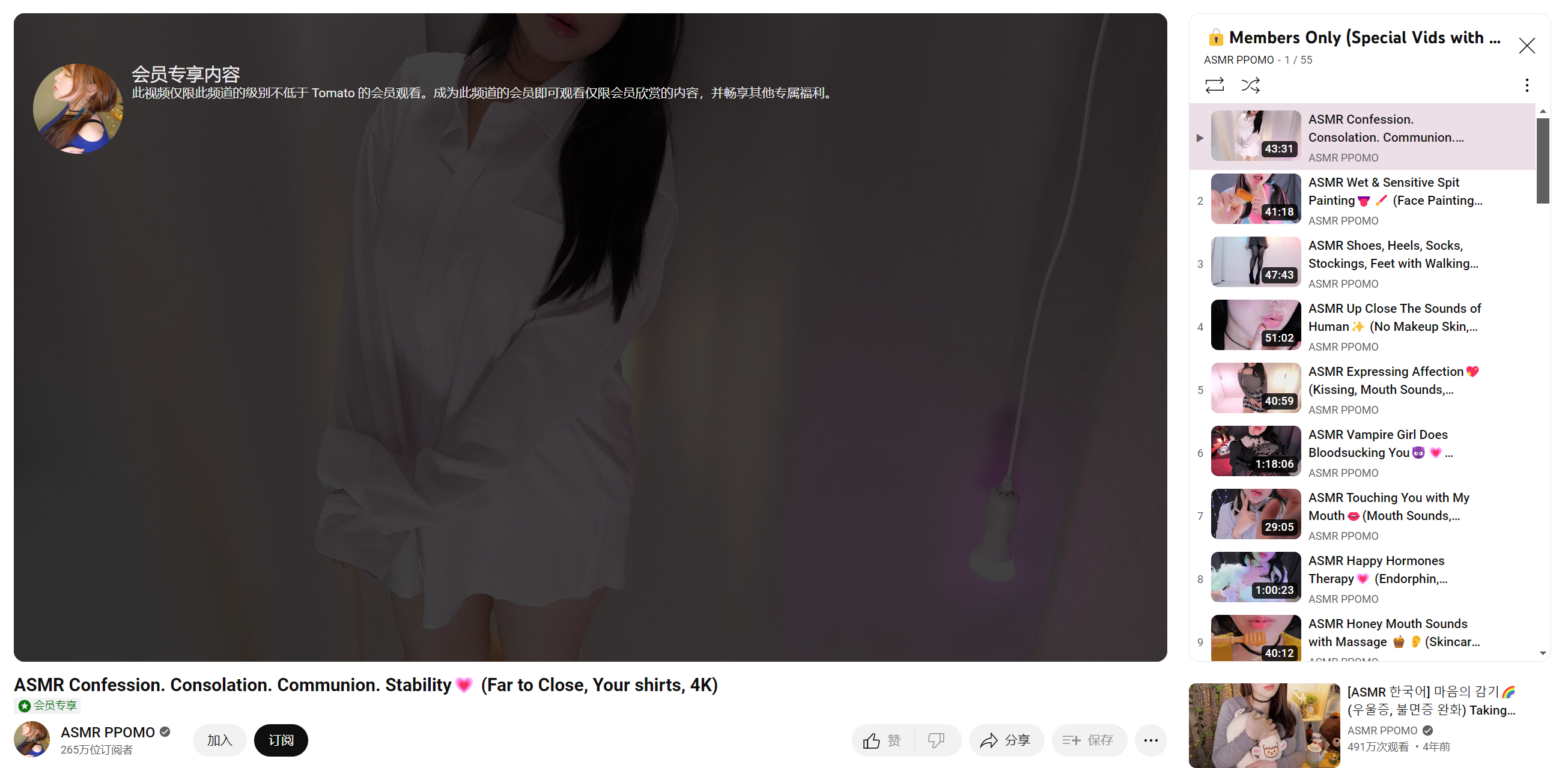 内容暂为 ASMR PPOMO 的会员专享视频和会员专属录播